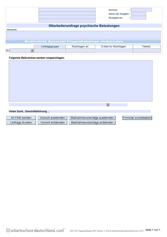 Mit diesem dynamischen PDF-Tool können Sie unkompliziert und schnell geeignete Fragebögen zur Bewertung der psychischen Belastungssituation im Unternehmen erstellen.